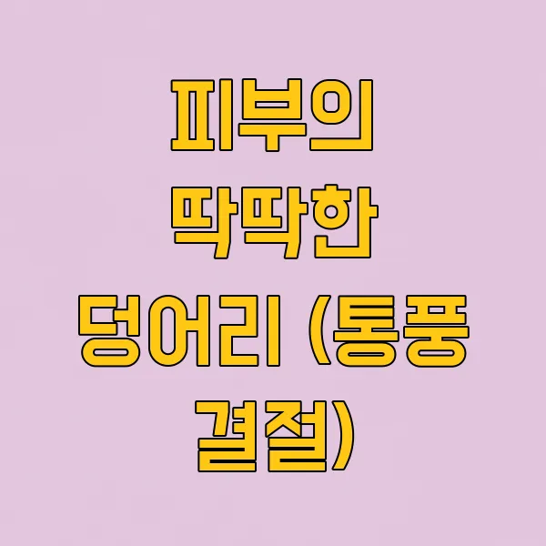 만약 통풍이 오래되거나 제대로 관리되지 않으면, 피부 아래에 요산 결정이 뭉쳐 딱딱한 덩어리 가 만져질 수 있어요. 이걸 '통풍 결절'이라고 부른답니다.
